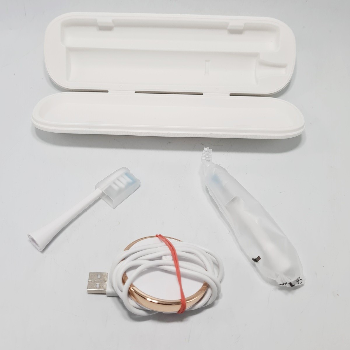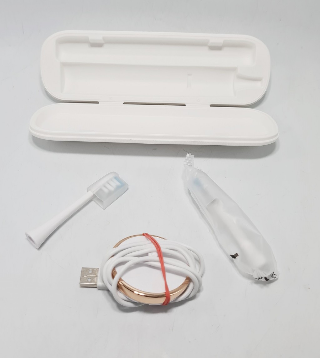 Szczoteczka w stanie idealnym, nie posiada śladów użytkowania. Technicznie sprawna. W zestawie 2 końcówki, etui, ładowarka.