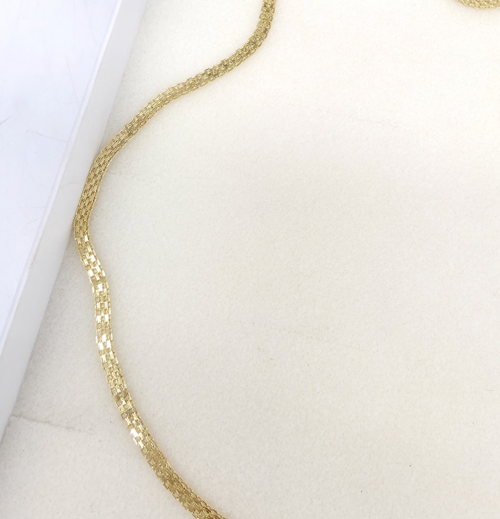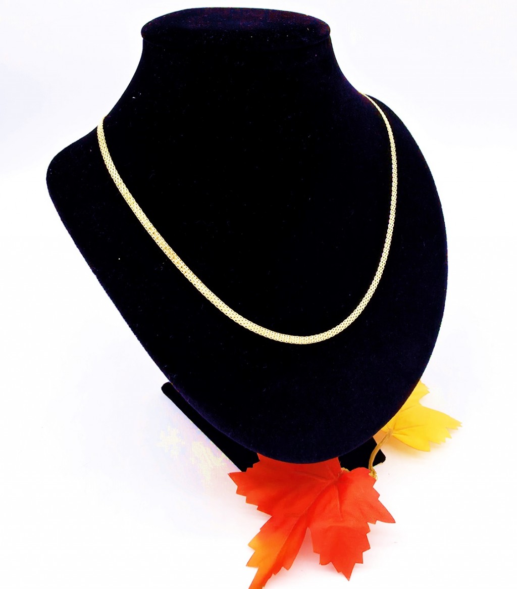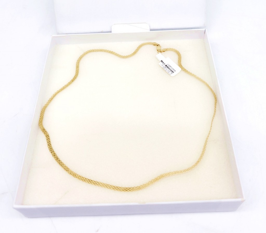 Piękny naszyjnik do każdej stylizacji. Wyrób jubilerski z żółtego złota próby 585. Waga 5,77g, długość 50cm, szerokość 3,8mm. Polecam!
