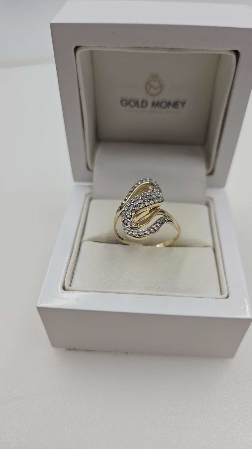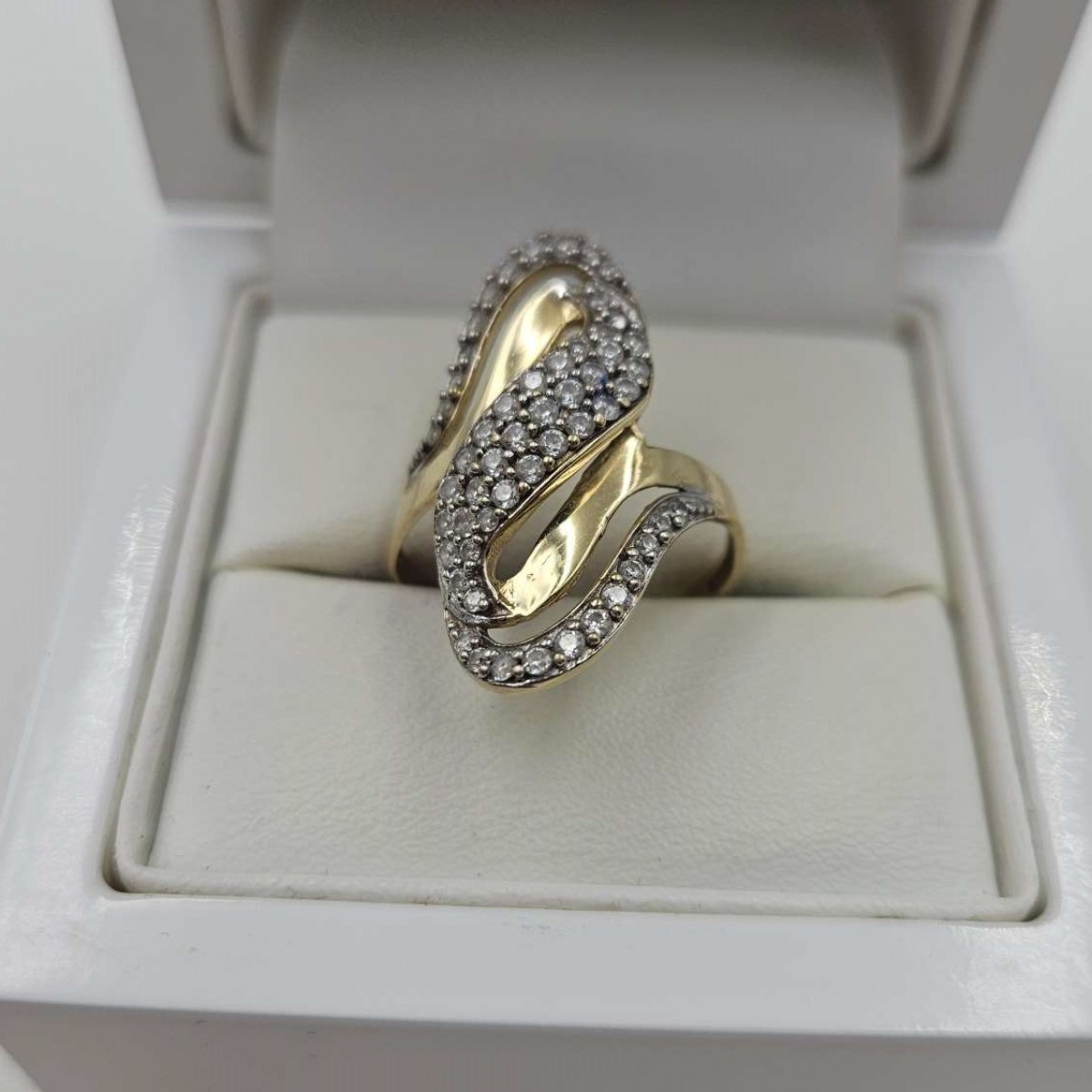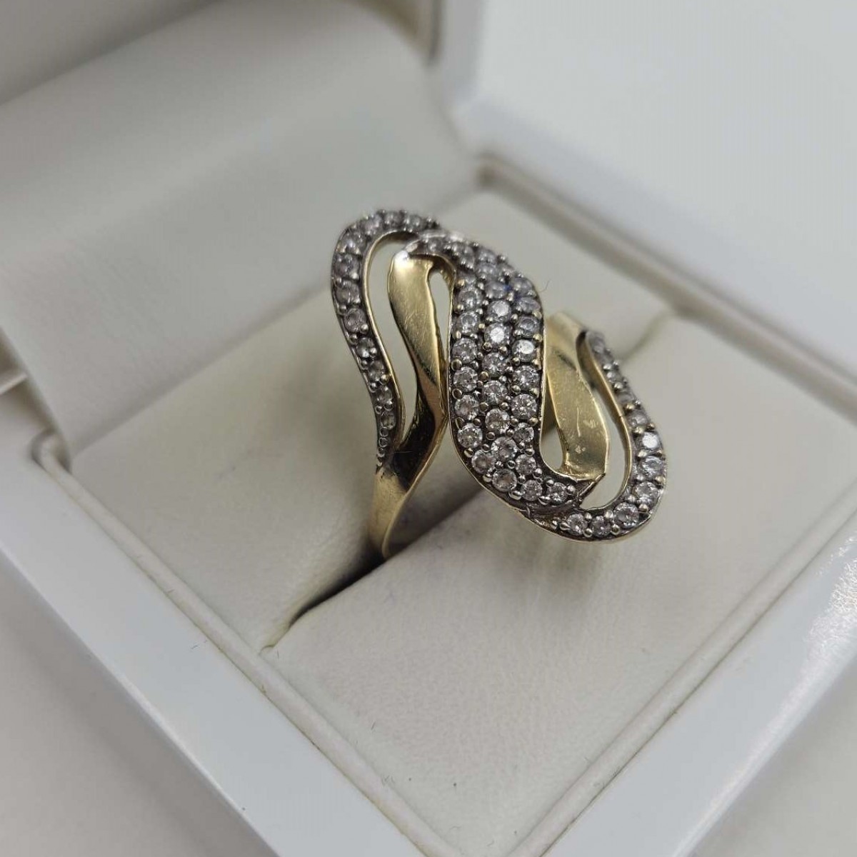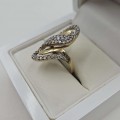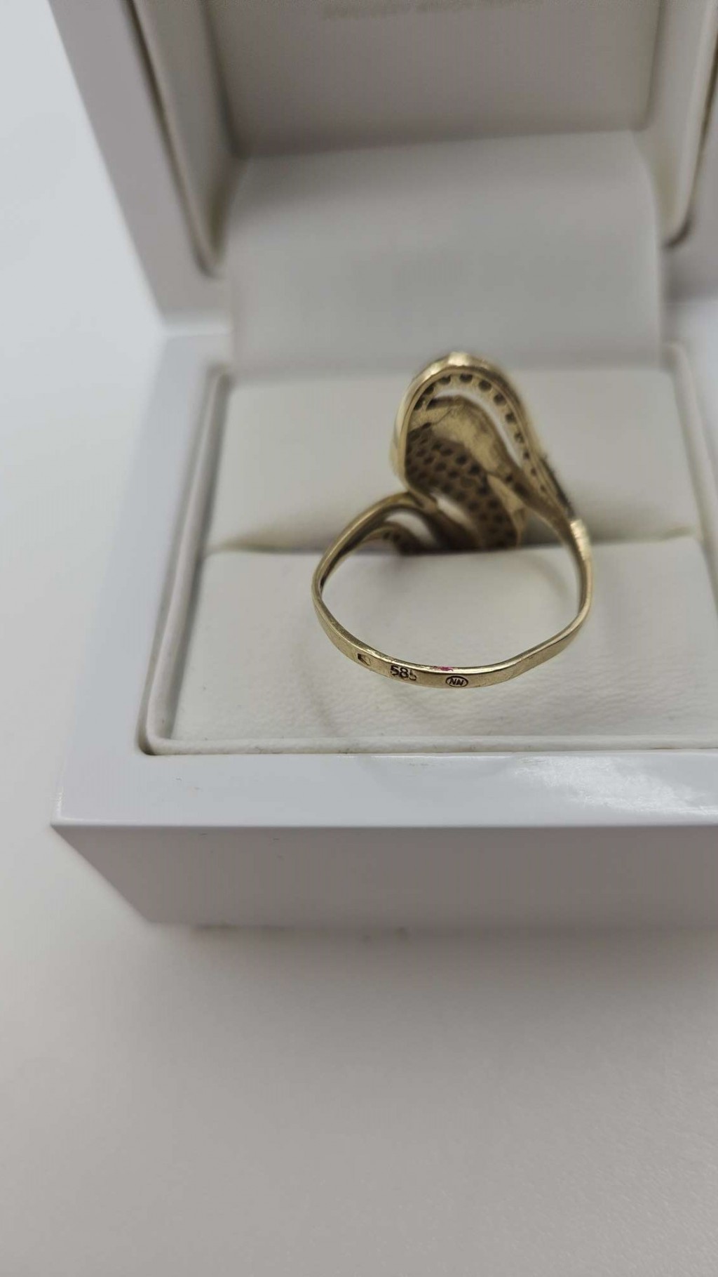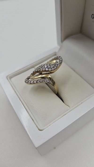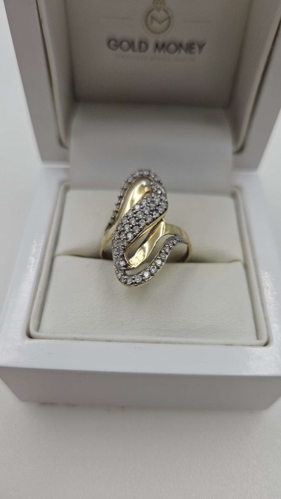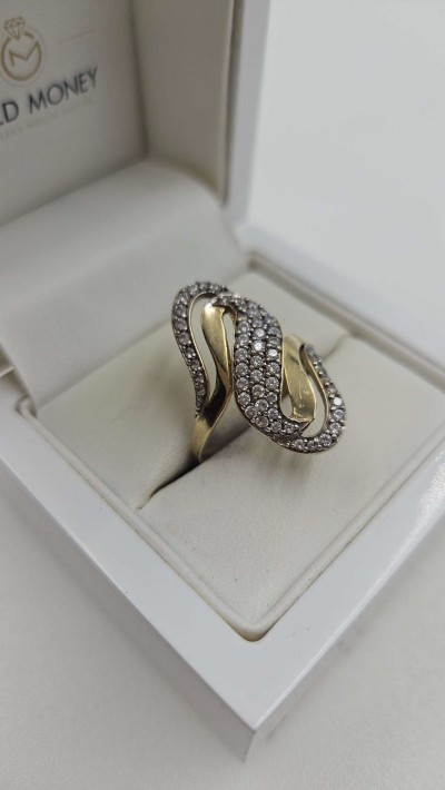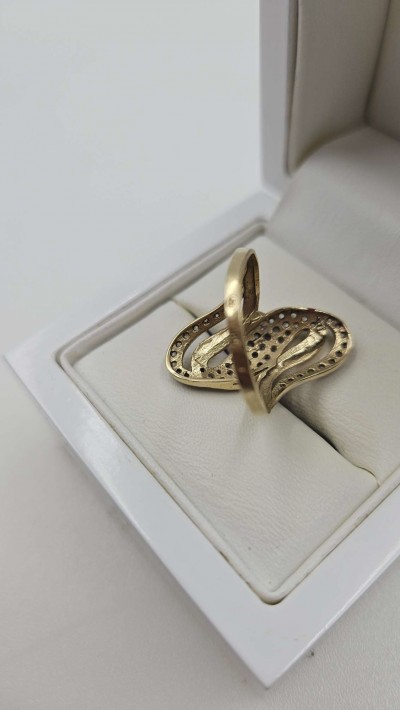 Złoty pierścionek duży z cyrkoniami 585 R.18
