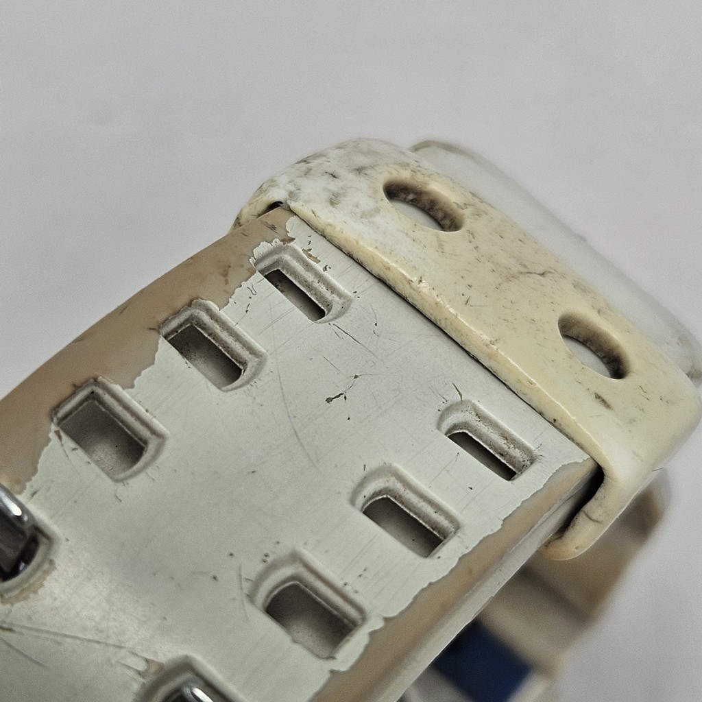 - Koperta i pasek: biały mat – wykonane z lekkiej, odpornej żywicy