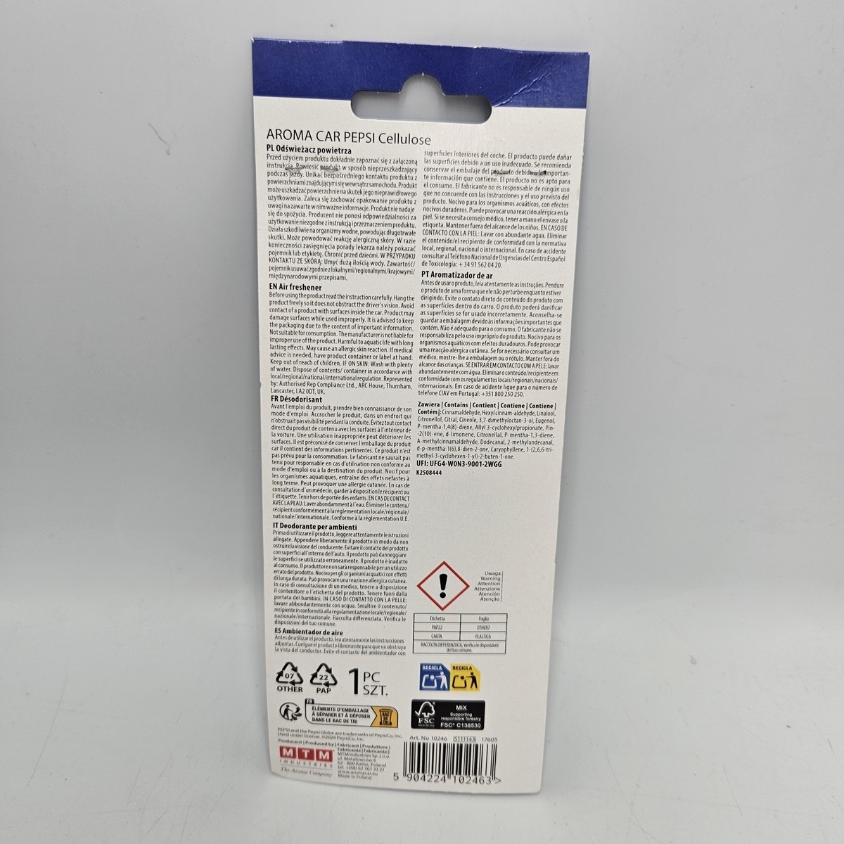 Celulozowa zawieszka nasączona płynną kompozycją zapachową. Stworzona dla fanów napoju Pepsi. Połączenie wysokiej jakości z wiekową tradycją.
