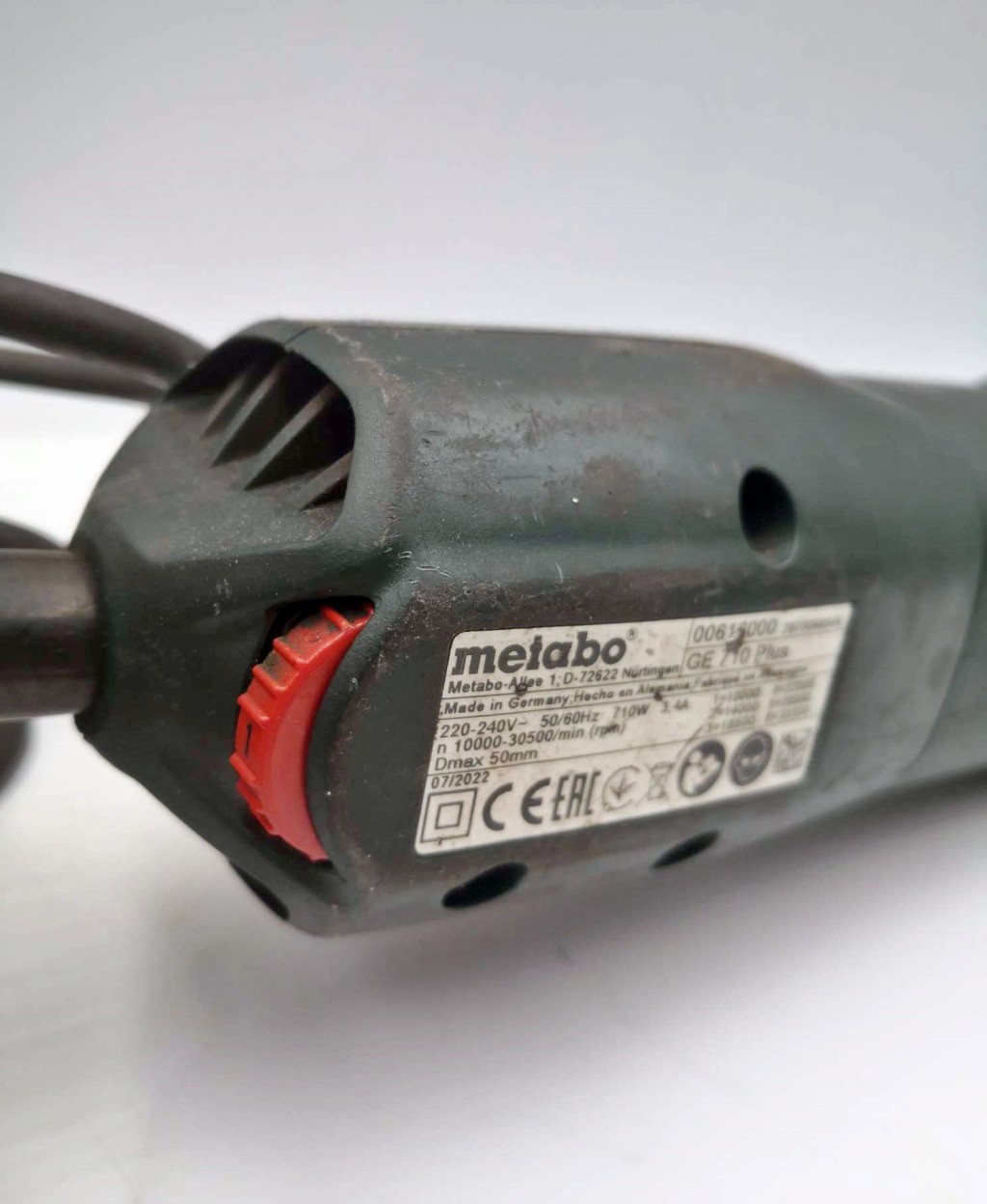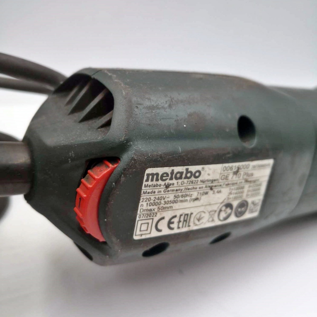 Używana szlifierka Metabo GE 710 Plus. Narzędzie w dobrym stanie technicznym, gotowe do pracy.