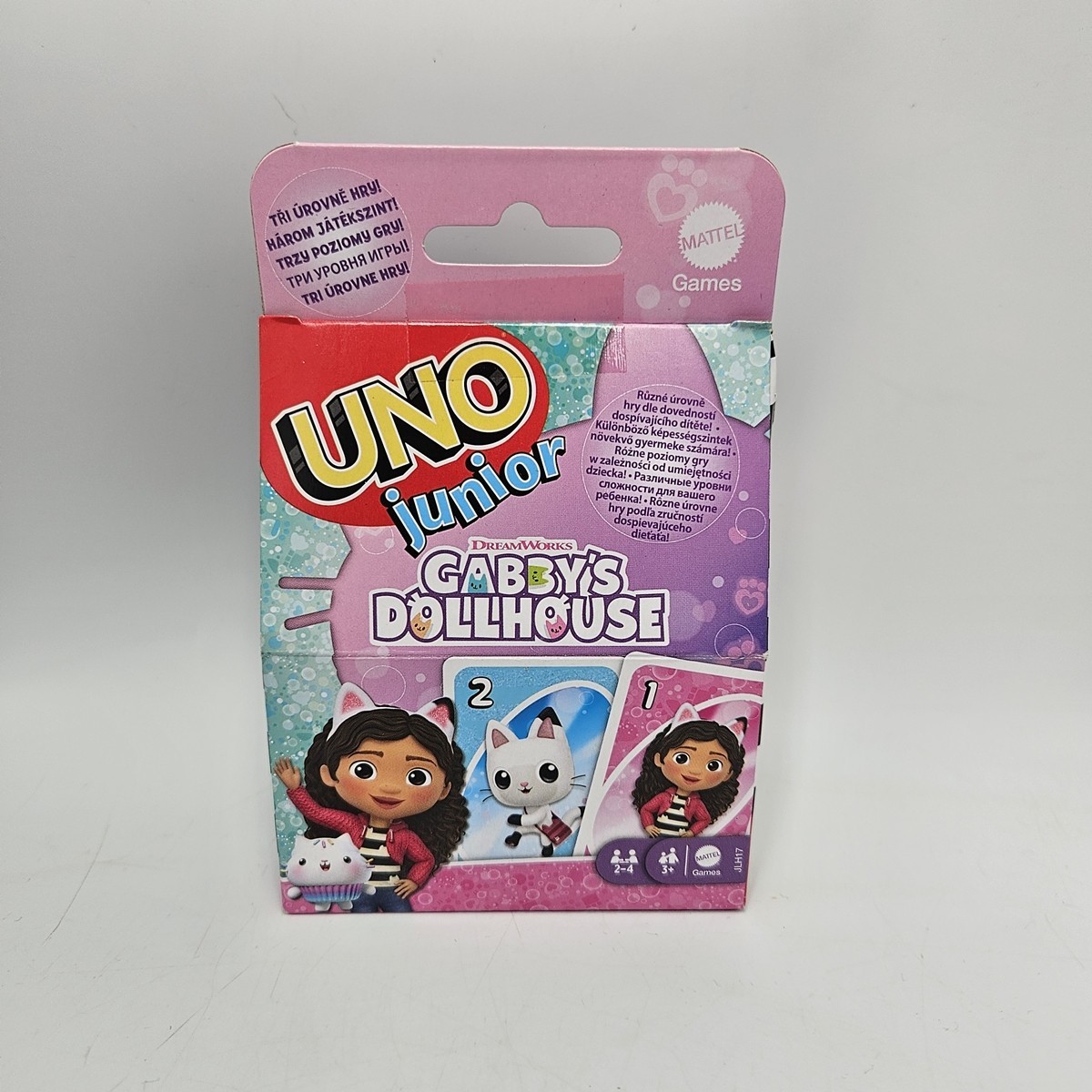 - Talię kolorowych kart UNO Junior Koci Domek Gabi