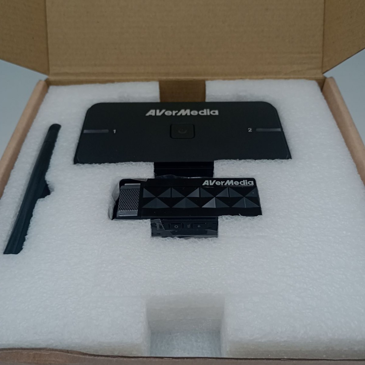Na sprzedaż AVERMEDIA MIC AW315 bezprzewodowy mikrofon, produkt zapakowany fabrycznie, otwarty w celu sprawdzenia zawartości pudełka. W zestawie z całym akcesorium. Na zdjęciu z tyłu pudełka widać to co posiada cały zestaw.