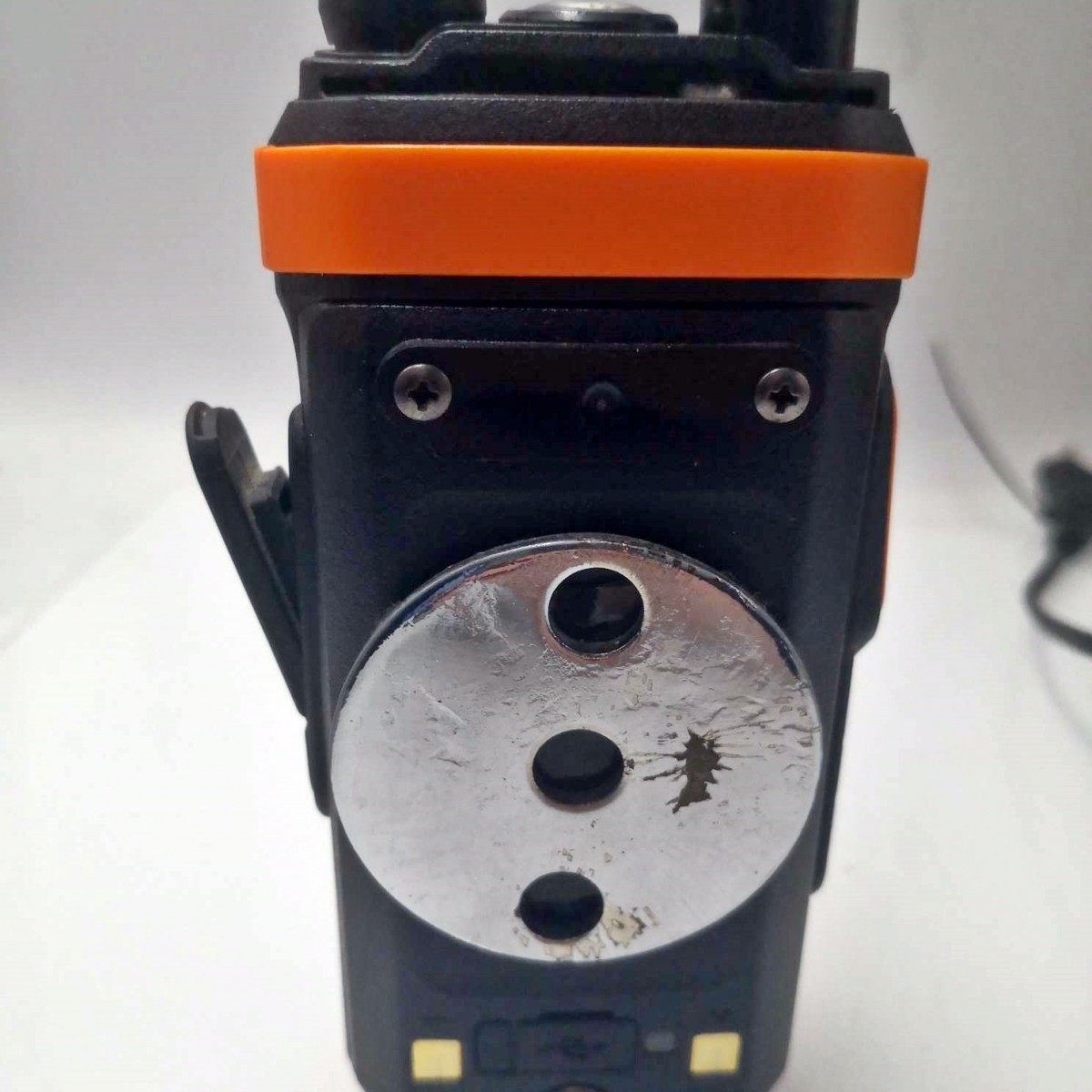 Wizualnie widoczne są oznaki użytkowania: rysy, zadrapania i zabrudzenia.
