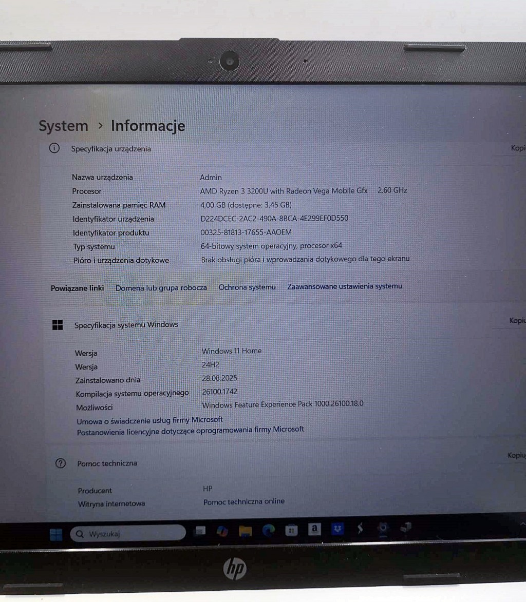 - Procesor : AMD Ryzen 3 3200U 2x 2.60GHz (3.50)