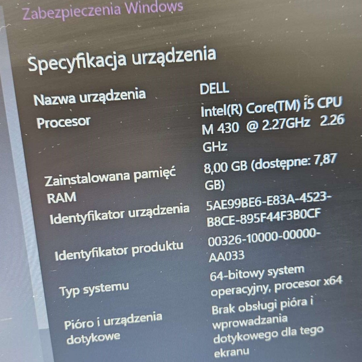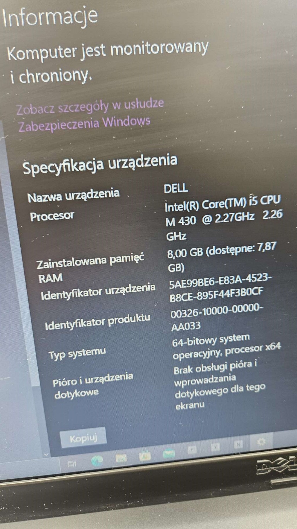 Laptop używany stan dobry posiada zabrudzenia ryski