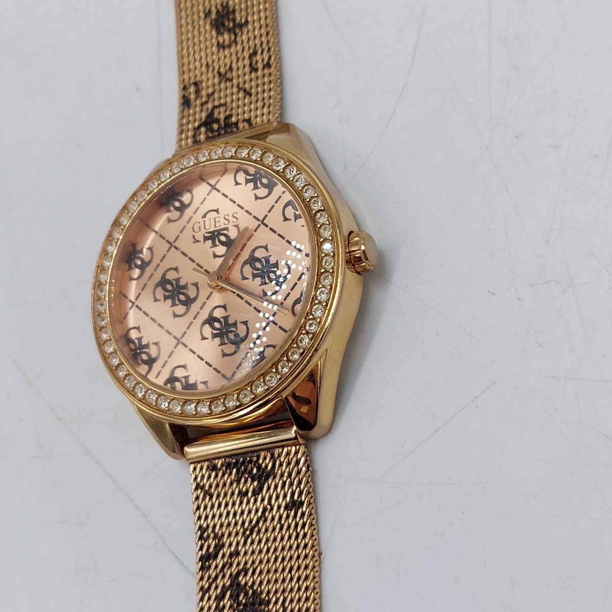 Guess Claudia W1279L3 to zegarek w wyjątkowym wykończeniu dla każdej nowoczesnej kobiety. Stalowa koperta mierzy 36,5 mm szerokości i została wykonana z odpornej na korozję stali szlachetnej. Dopasowano do niej modną stalową bransoletę, a całość została wykończona w powłoką IP w różowozłotym kolorze. Na tarczy przykrytej szkłem mineralnym i bransolecie umieszczono litery G splecione ze sobą, które nadają szczególnego charakteru temu modelowi. Nazwa tego modelu wzięła się właśnie z tego charakterystycznego elementu. Wodoszczelność na poziomie 10M gwarantuje odporność na lekkie zachlapania.