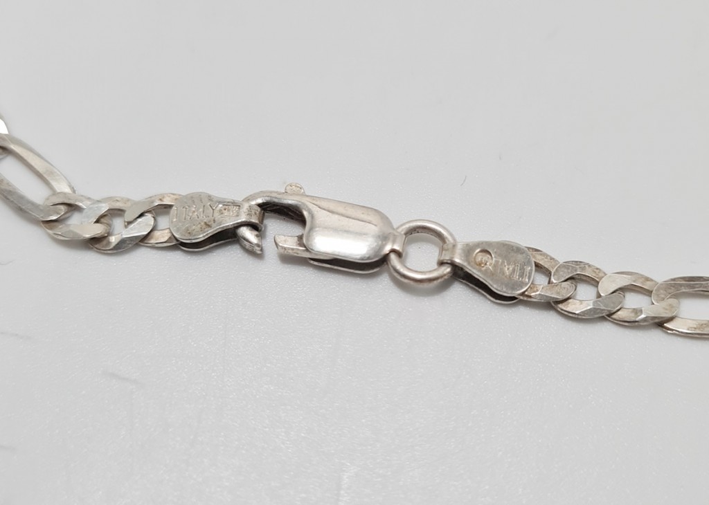 Łańcuszek w dobrym stanie posiada lekkie ryski, wytarcia oraz zabrudzenia.