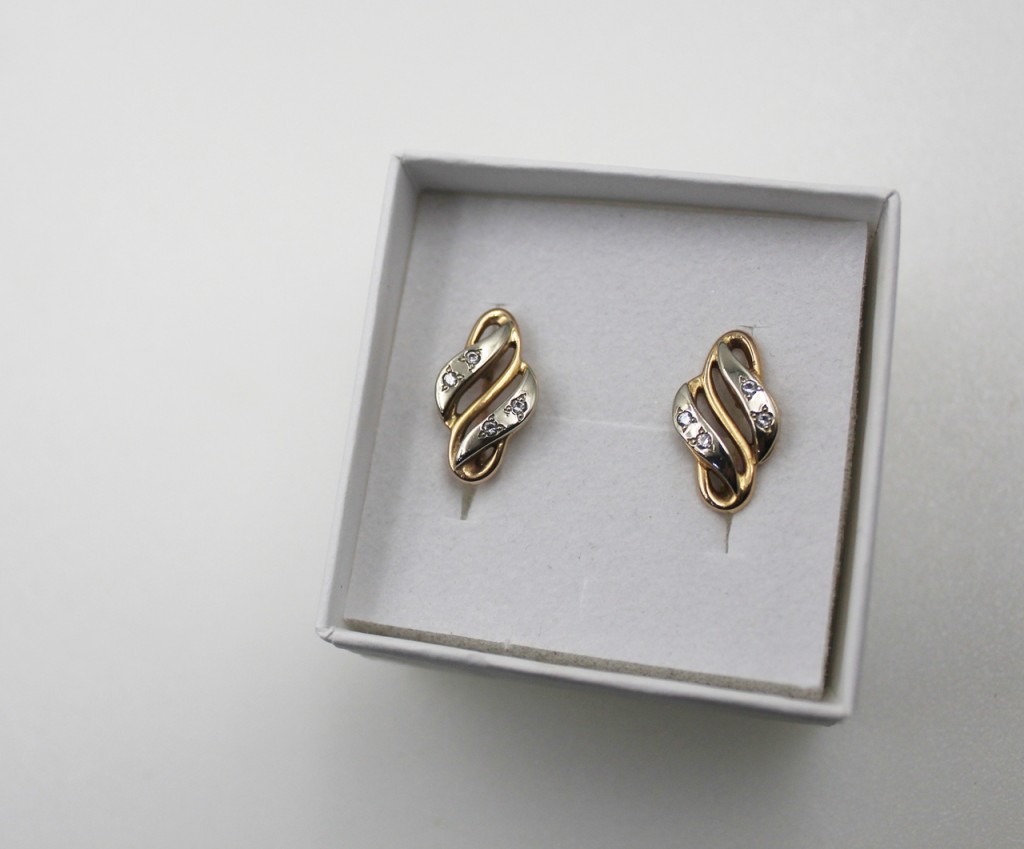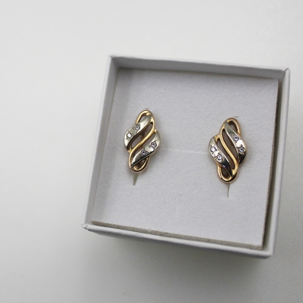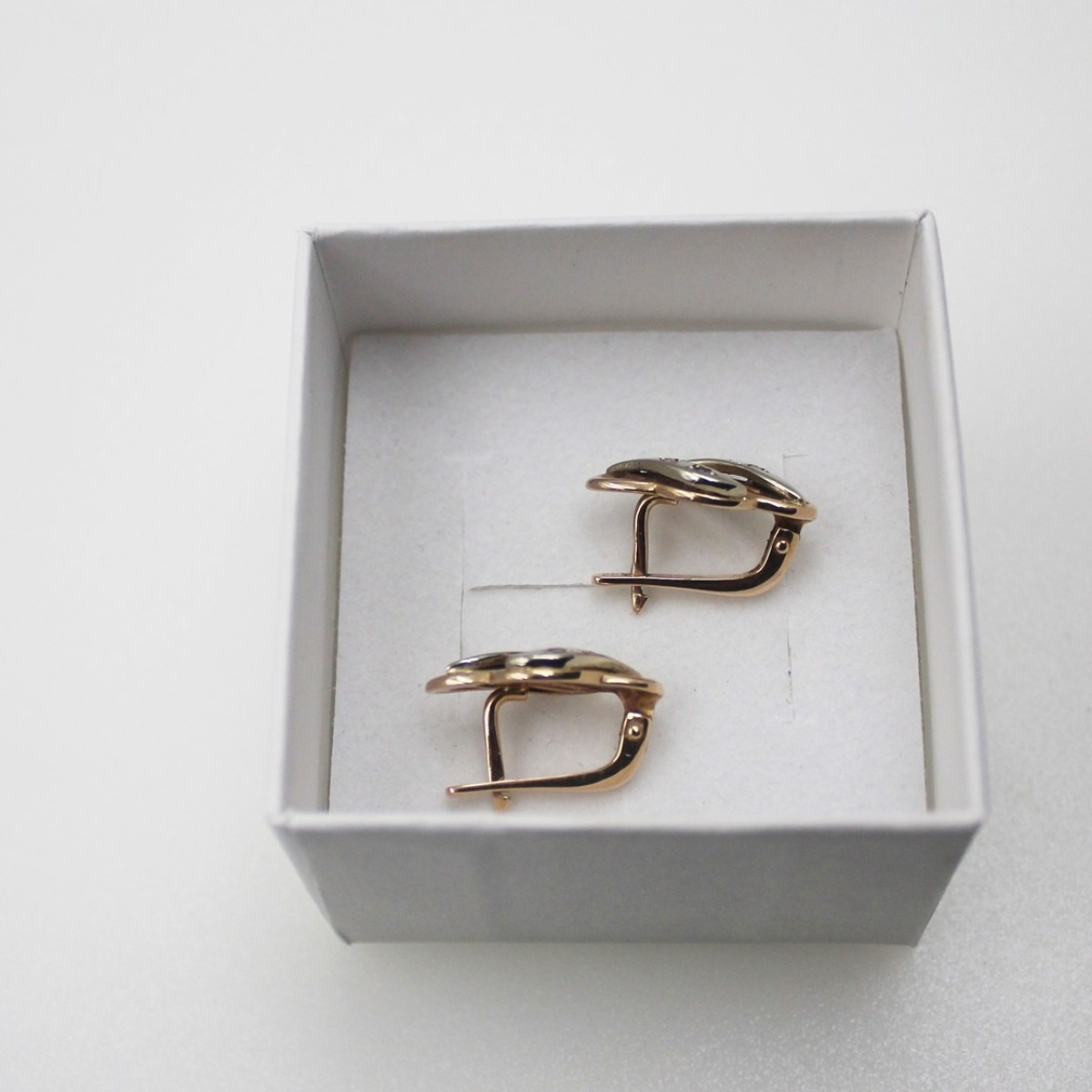 Złote Kolczyki Angielskie z Białym Złotem 585 4,32g