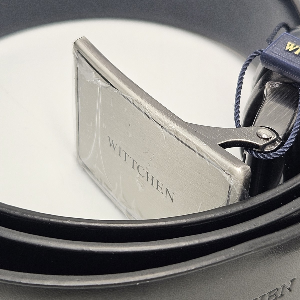 WITTCHEN Męski pasek ze skóry z zabudowaną klamrą czarny 110cm