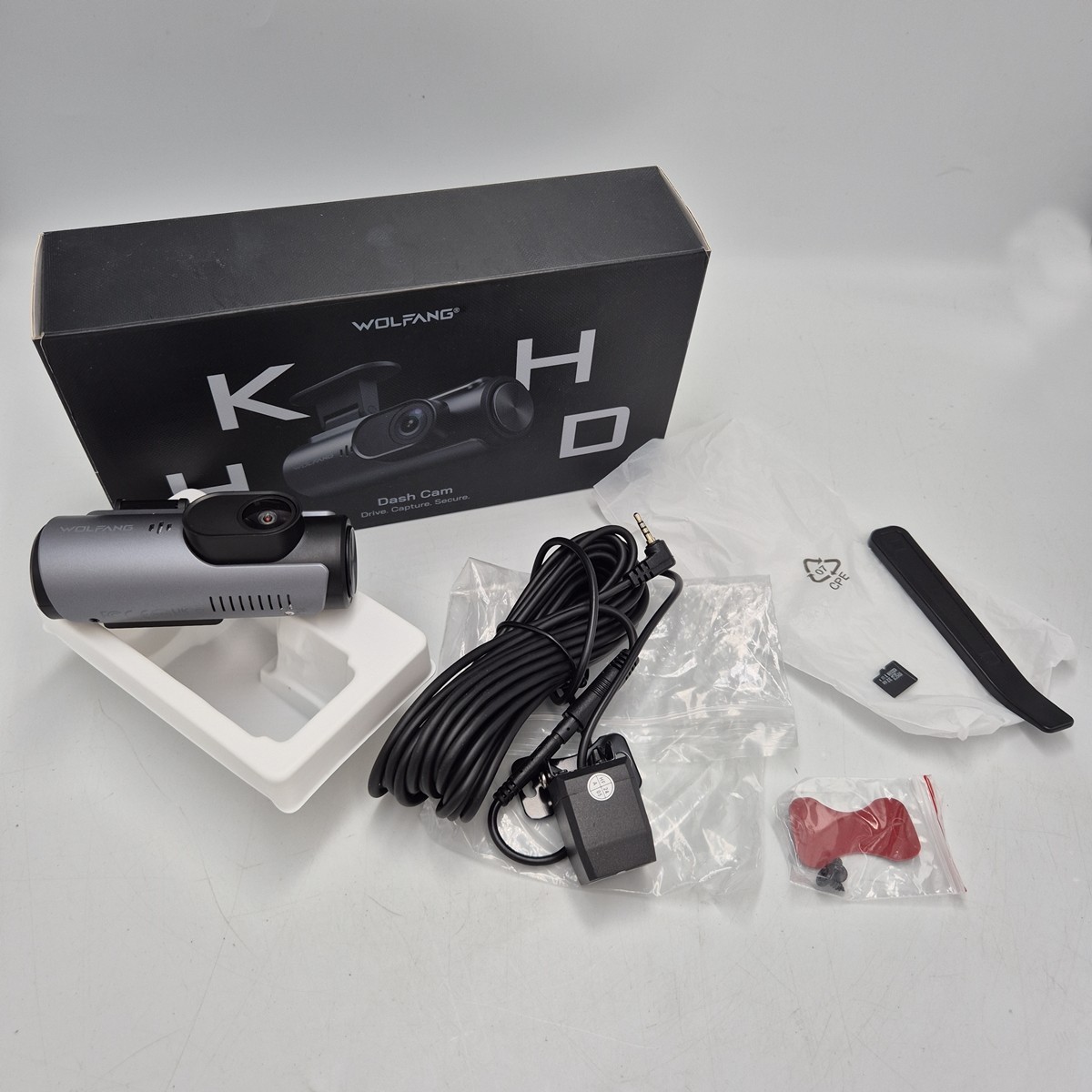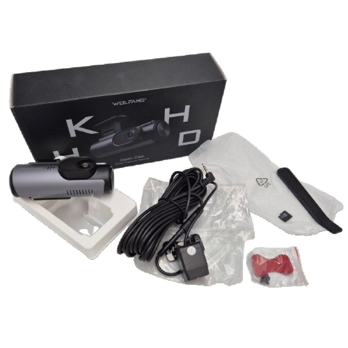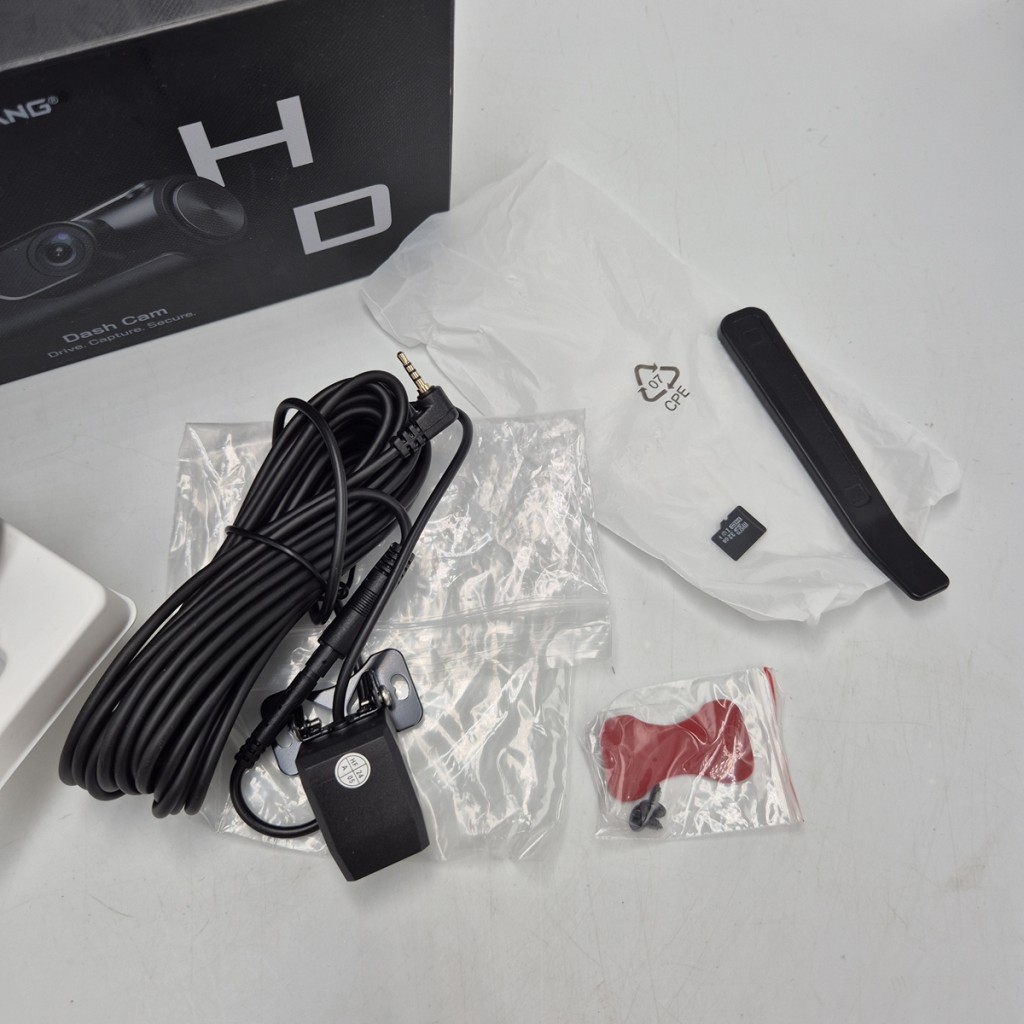 Kamerka posiada kartę pamięci 32GB oferowaną przez producenta. Nie posiada jednak kabla usb z kostką samochodową.