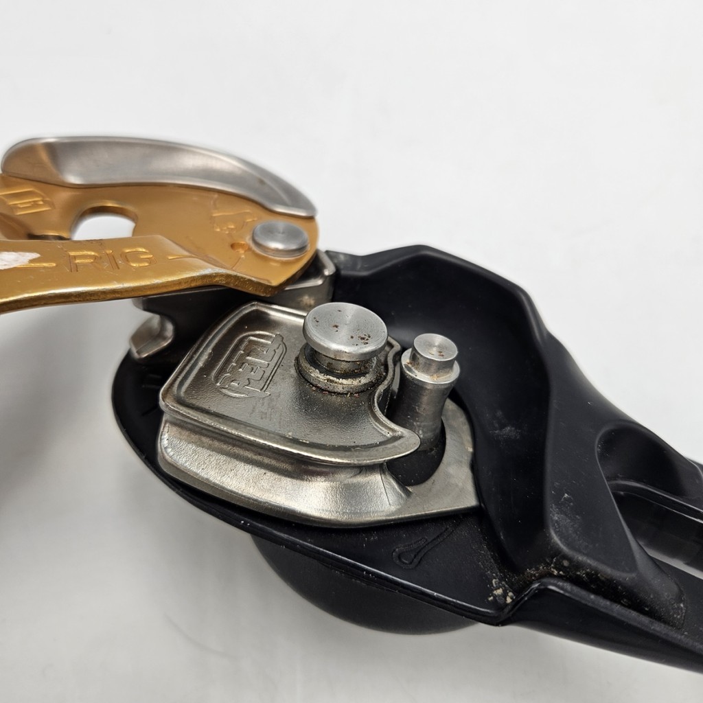 • Zapadka blokującą na okładce ruchomej chroni przyrząd przed zgubieniem jednocześnie ułatwiając zakładanie liny przy przepinaniu się