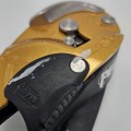 • Po zablokowaniu, lina może zostać wybrana bez konieczności manipulacji rączką, co umożliwia na przykład krótkie wychodzenie po linie, przy zastosowaniu pętli nożnej FOOTAPE lub FOOTPRO i dodatkowego przyrządu zaciskowego ASCENSION