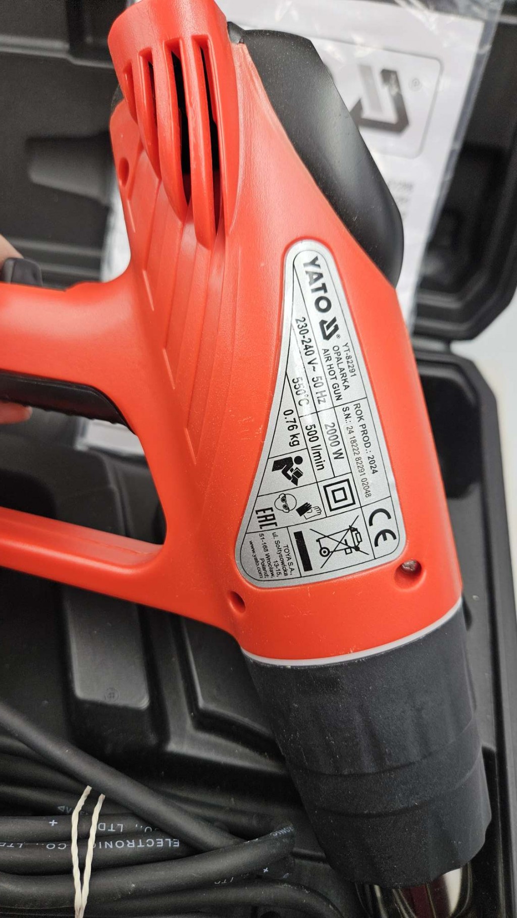 YATO OPALARKA ELEKTRYCZNA 2000W 350/550°C AKCESORIA WALIZKA
