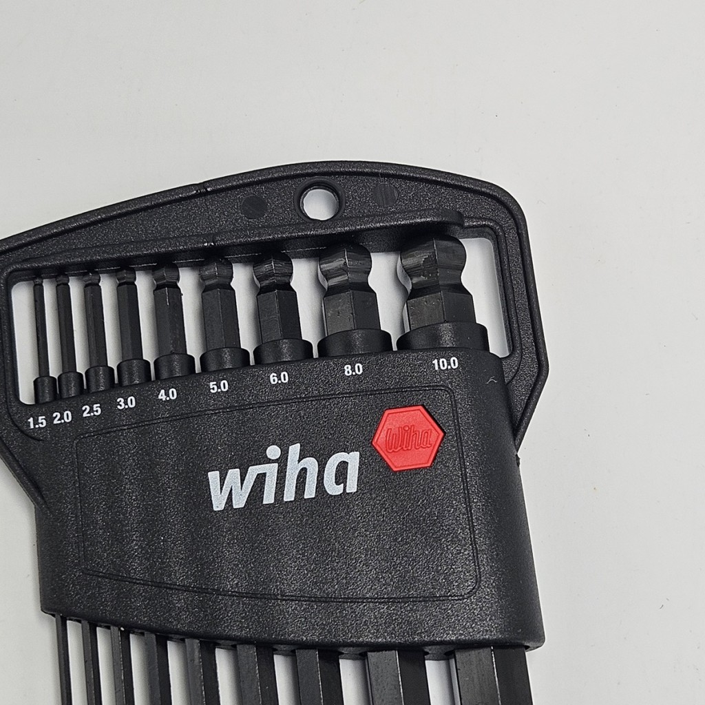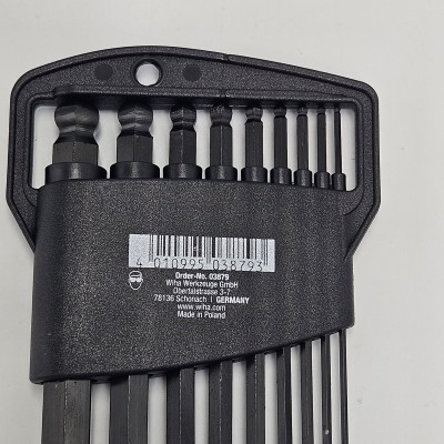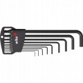 - Klucz trzpieniowy sześciokątny z głowicą kulową: 1,5 x 91, 2 x 101, 2,5 x 113, 3 x 128, 4 x 142, 5 x 163, 6 x 184, 8 x 206, 10 x 231 mm.