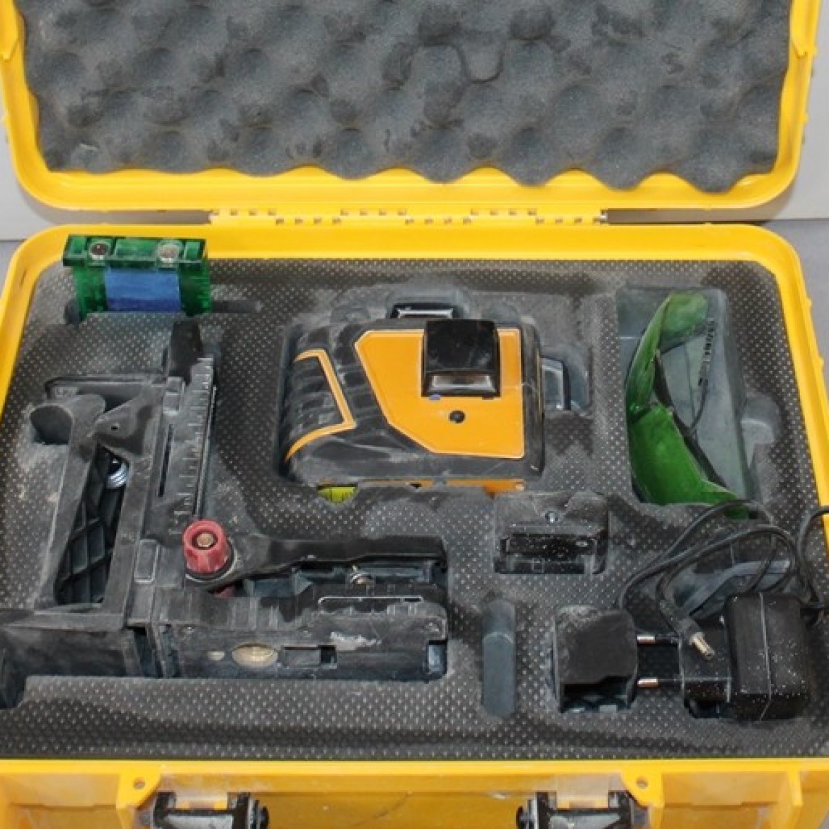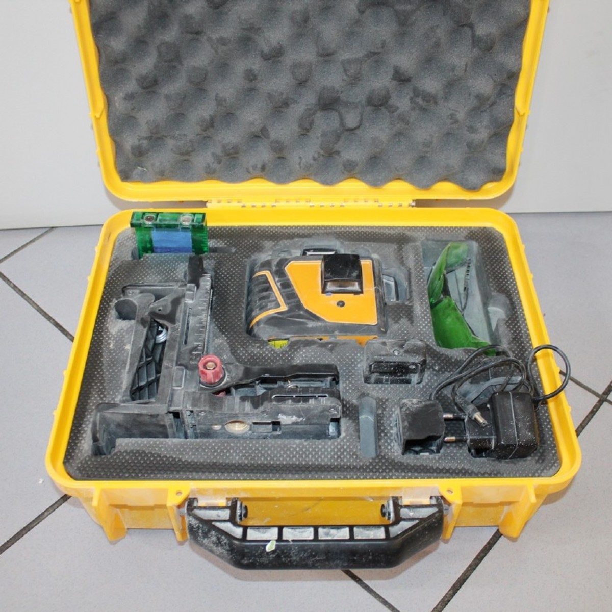 W zestawie: Laser, walizka, ładowarka, pokazane na zdjęciach akcesoria.