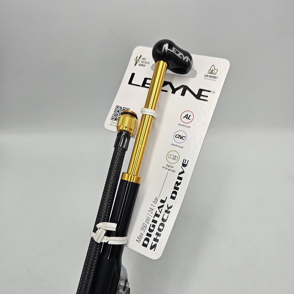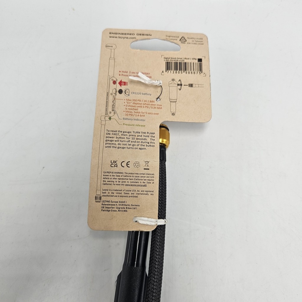 Digital Shock Drive to kompaktowa i ultralekka pompka do amortyzatorów, która zapewnia precyzyjne pompowanie dzięki cyfrowemu manometrowi (Digital Strip Gauge) o dokładności ±1,5%. Wykonana z obrabianego aluminium, łączy trwałość z eleganckim wyglądem. Konstrukcja zero-loss chuck eliminuje utratę ciśnienia przy odłączaniu pompki, gwarantując dokładne odczyty. Maksymalne ciśnienie 350 psi (24 bar) pozwala na wszechstronne zastosowanie, a zintegrowany w rękojeści wąż ułatwia transport i przechowywanie.