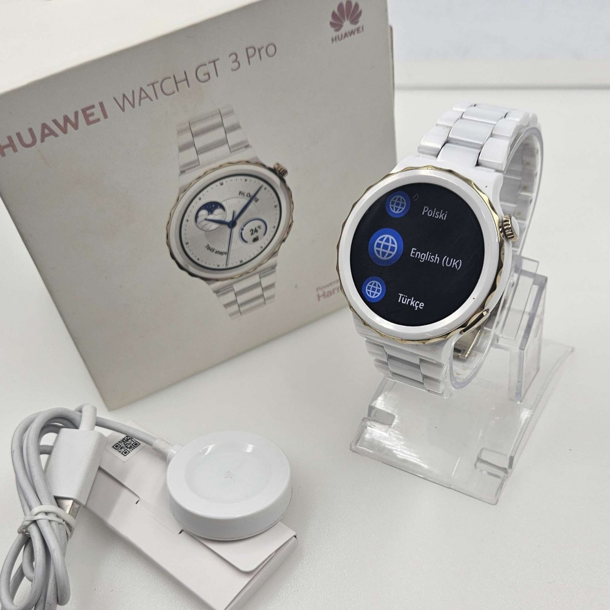 W zestawie komplet zegarek ładowarka pudełko