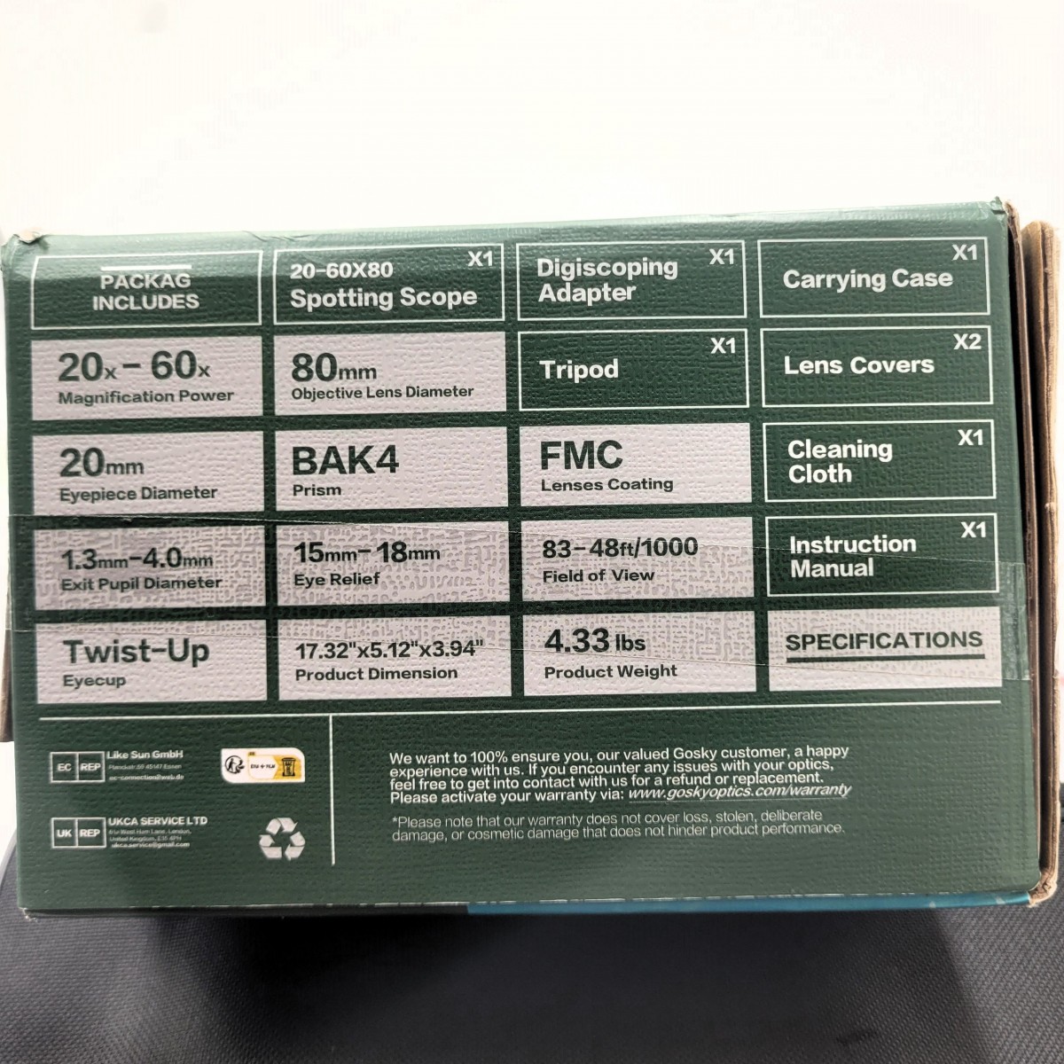 LUNETA PUNKTOWA GOSKY MYŚLIWSKA 20-60X 80/NOWA