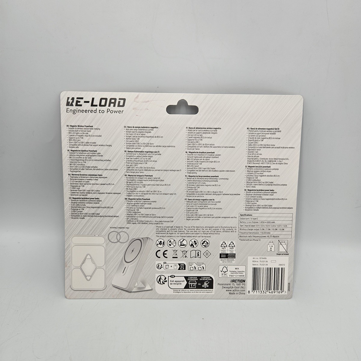 Bezprzewodowy magnetyczny powerbank Re-load 5000mAh 15W