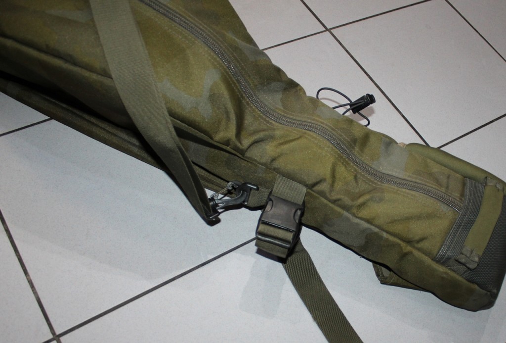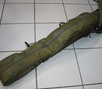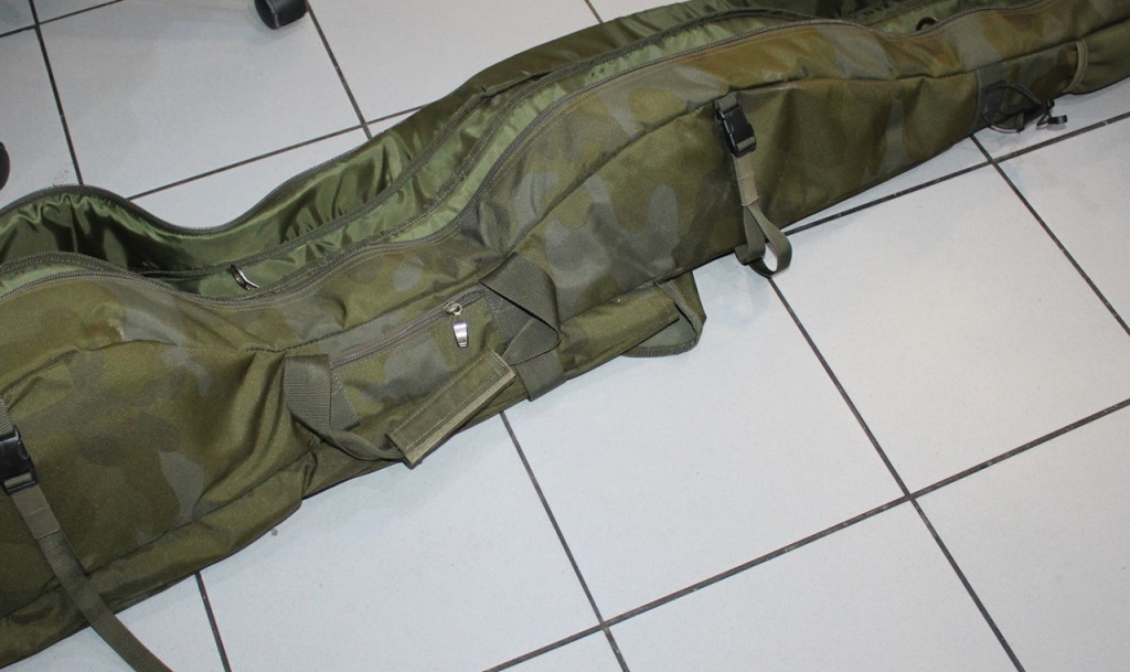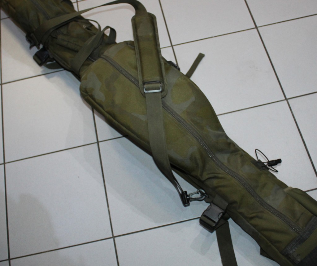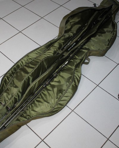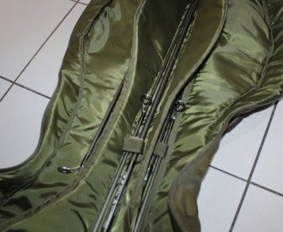 Wewnętrzny układ sprawia, że pokrowiec ma bardzo smukły profil, ale jego rozmiar pozwala na łatwe pomieszczenie kołowrotków typu big pit i wędek z przelotkami o średnicy 50 mm.