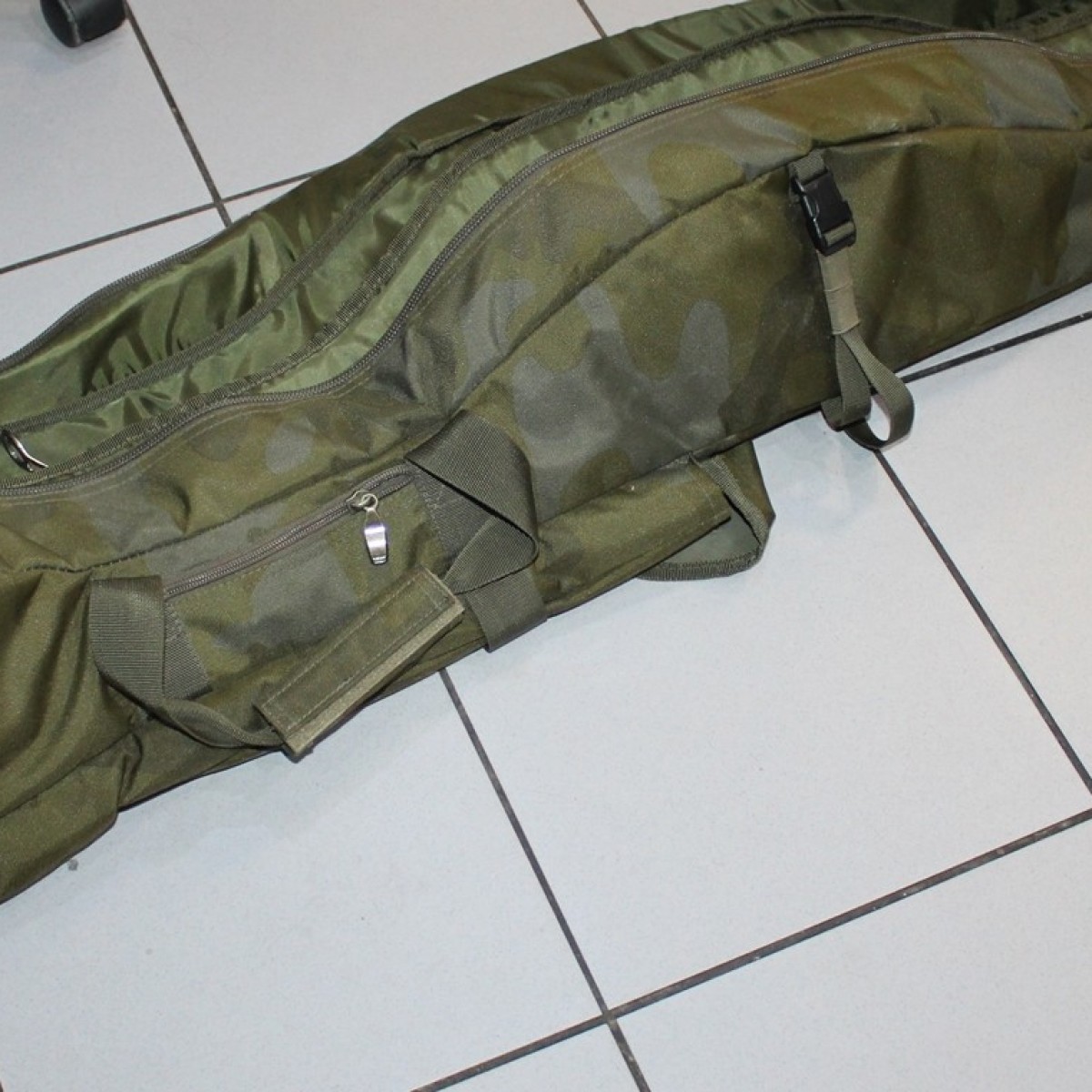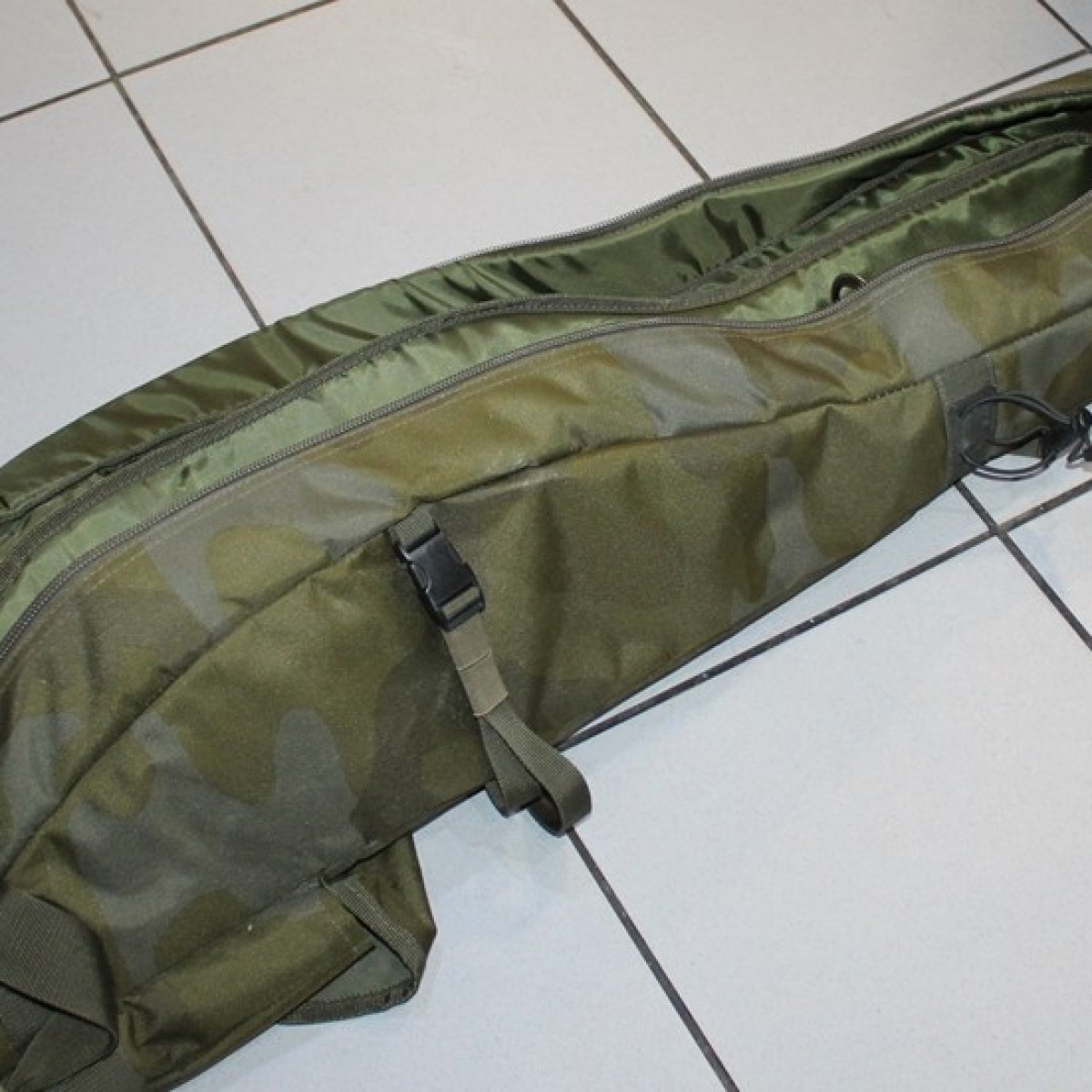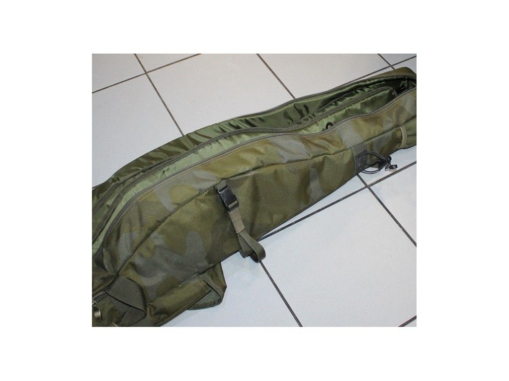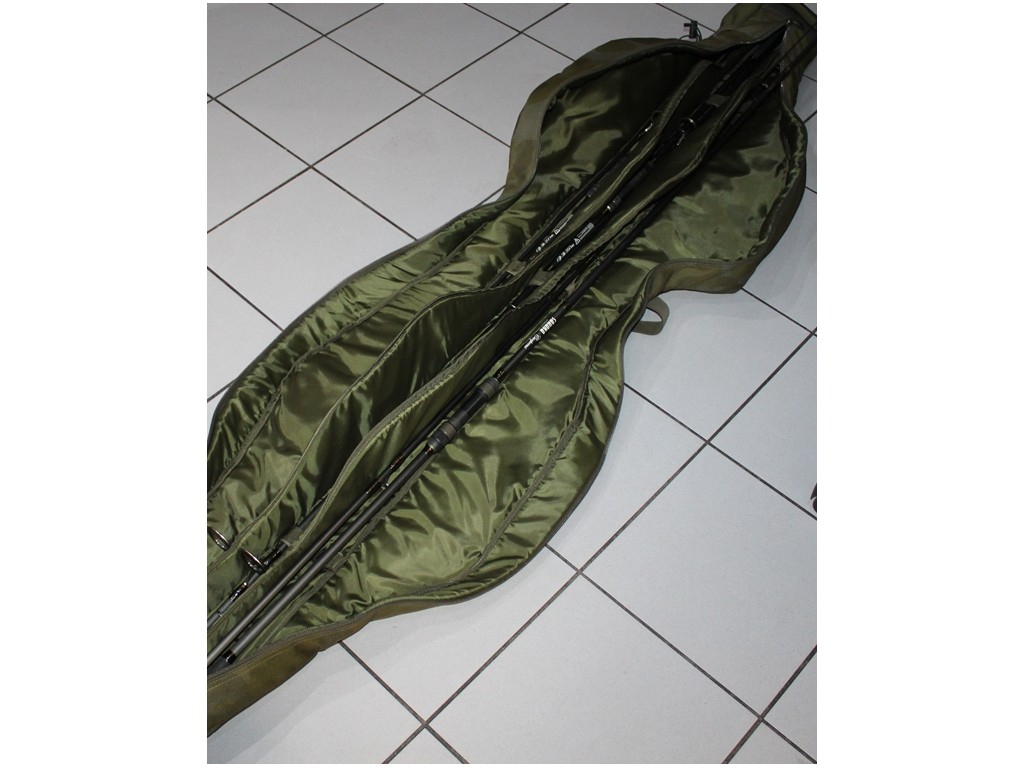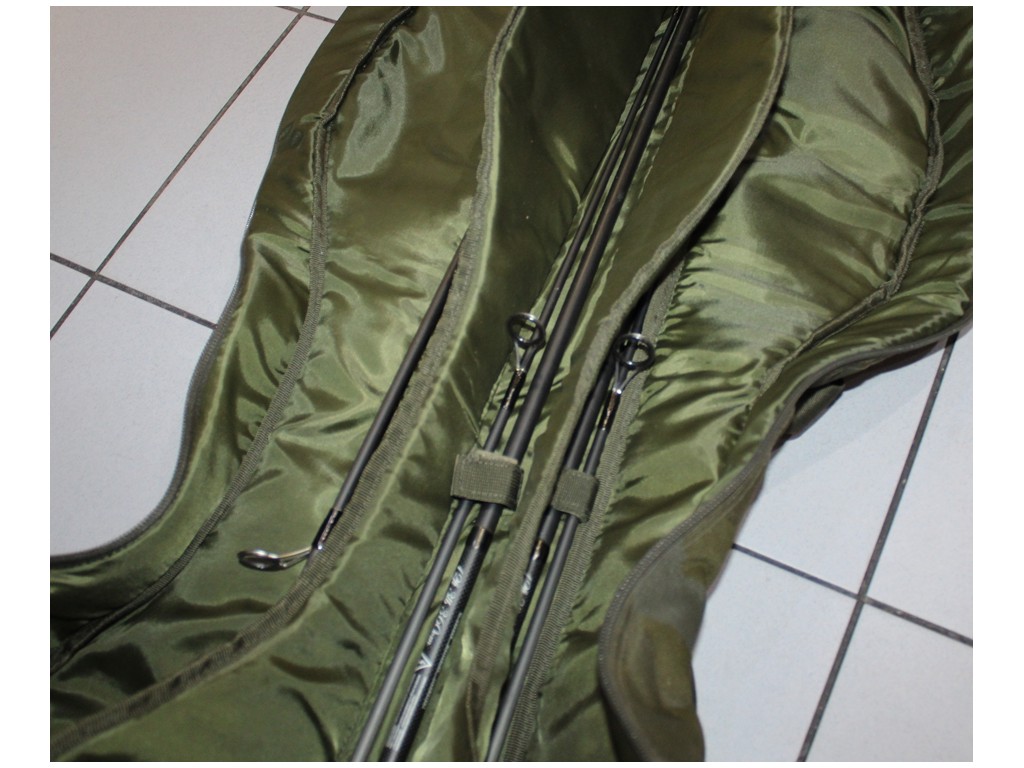 W pełni wyściełane przegrody i rzepy do zapinania wędek zapewniają bezpieczeństwo wędek. Innowacyjny system kieszeni bocznych można rozszerzyć, aby pomieścić namiot typu brolly, a także podbierak, worek do ważenia i podpórki. W razie potrzeby możesz również dodać 2 dodatkowe wędki na zewnątrz pokrowca. Posiada również dwa uchwyty, wyściełany pasek na ramię i dwie zewnętrzne kieszenie na ciężarki.
