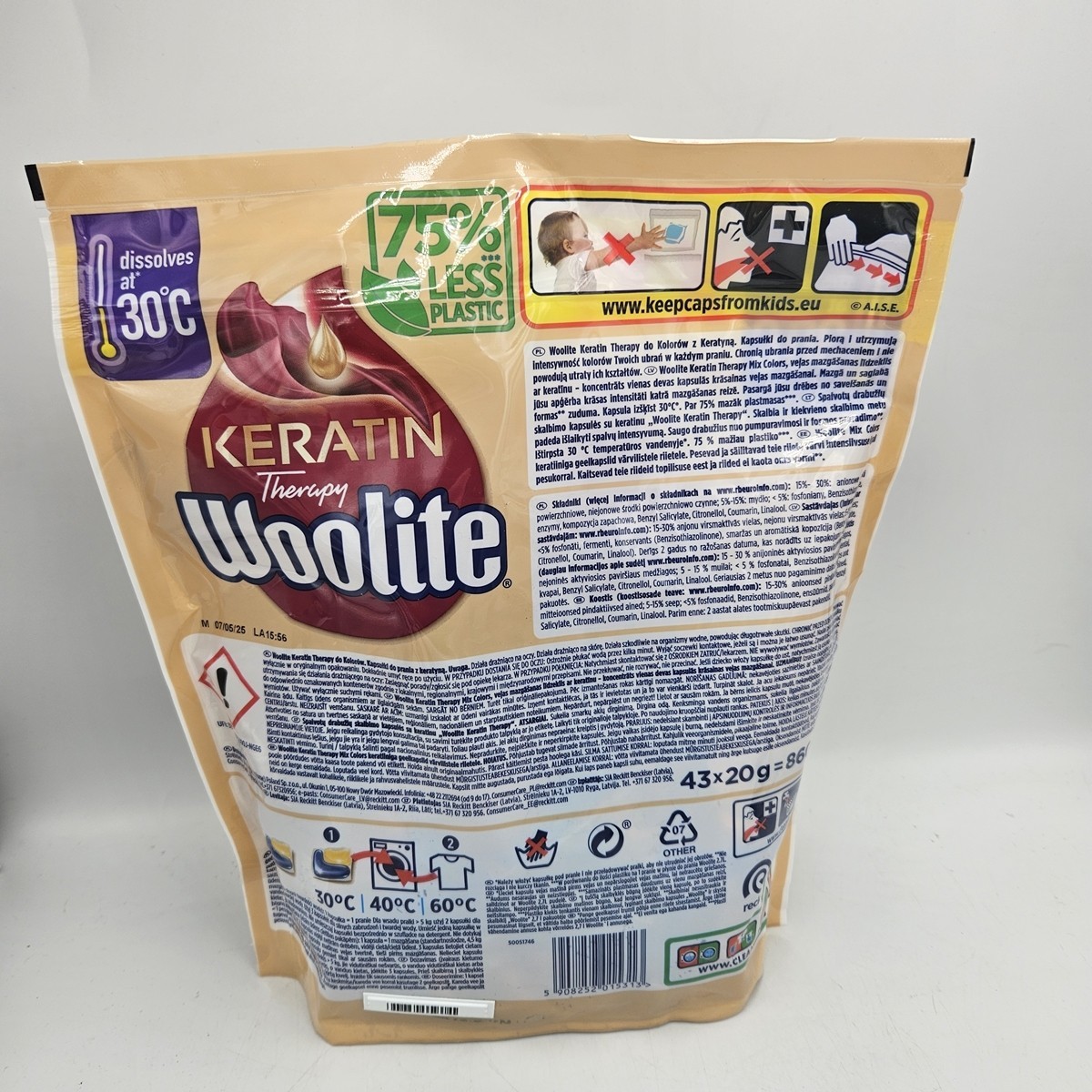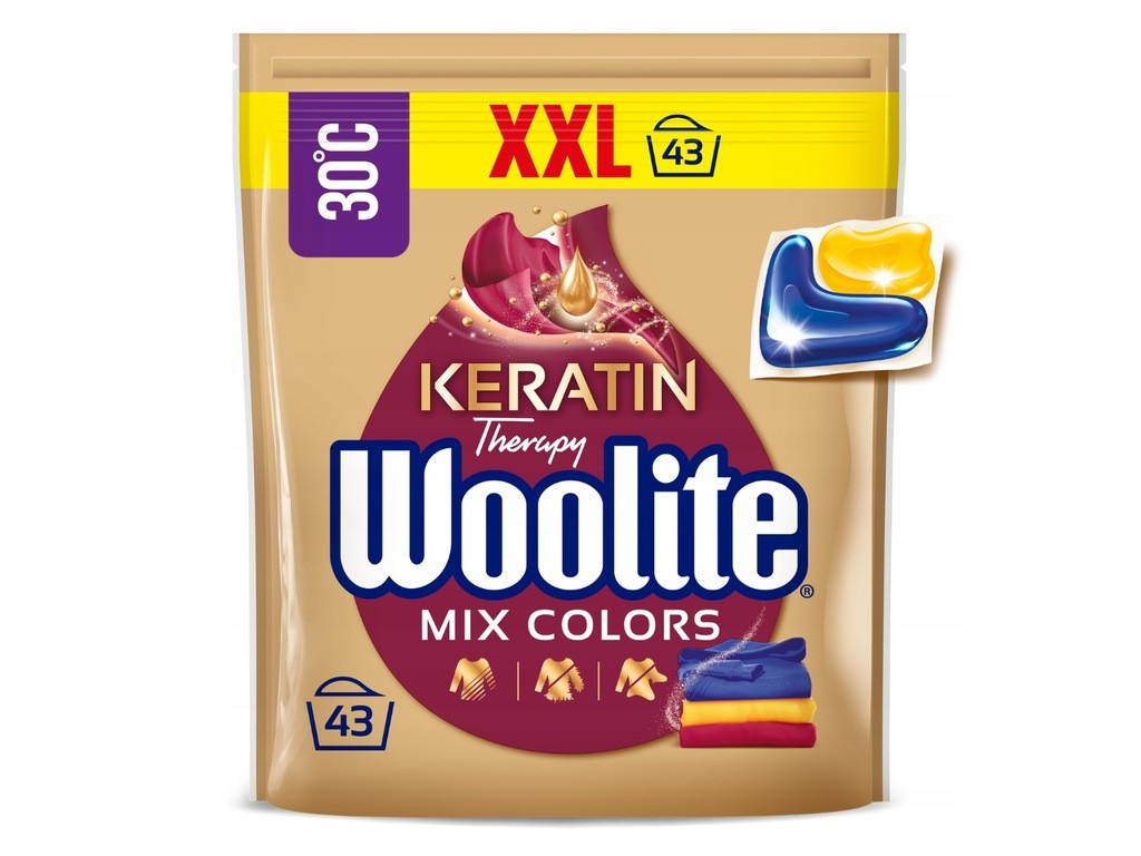 WOOLITE KERATIN Kapsułki do prania KOLOROWYCH tkanin MIX COLORS 43 szt.