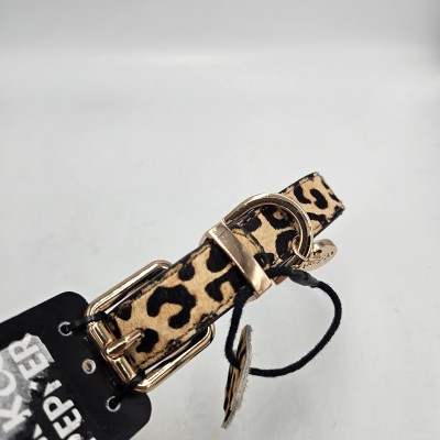 - Skórzana obroża z nadrukiem – wzór w panterkę
